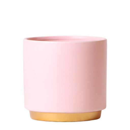 Kolibri Home | Gold foot pink bloempot - Roze keramieken sierpot met gouden rand - Ø12cm