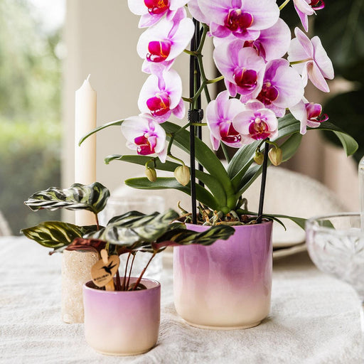 Geef je interieur een vleugje elegantie met de Gradience sierpot. De subtiele kleurovergangen – van zachtroze naar helder wit – zorgen voor een ser...
