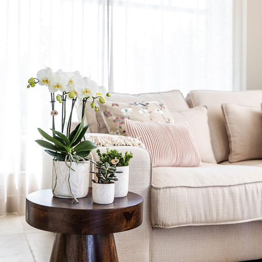 Alle gegevens bekijkenWitte Phalaenopsis orchidee - Amabilis + Lush pot - Ø9cm - ↕35cm - Bloeiende kamerplant