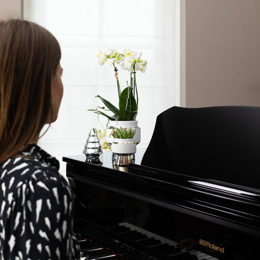 Alle gegevens bekijkenWitte Phalaenopsis orchidee – Jamaica + Lush pot – Ø9cm – ↕40cm - Bloeiende kamerplant in bloempot