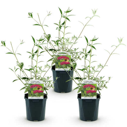 Alle gegevens bekijkenVlinderstruik - Buddleja davidii Tricolour - Bloem Roze, Wit en Paars - 3 Planten - 1m2 - ↕30cm - Ø17cm