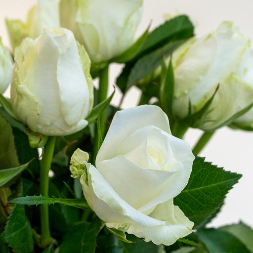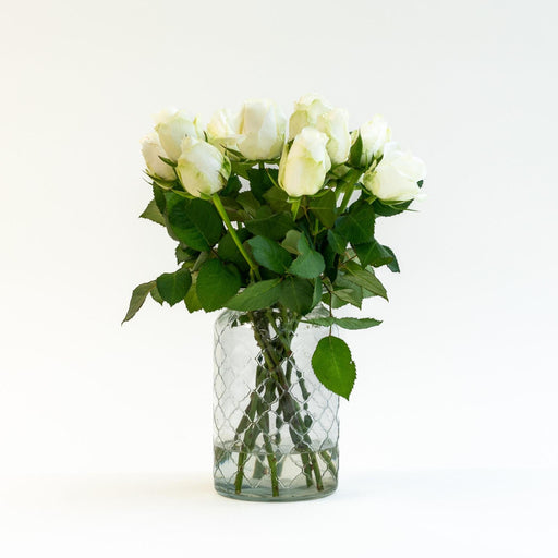 Brievenbusdoos met 12 witte rozen. Lengte van de rozen zijn 35cm. De bloemen zijn verpakt in een speciale verpakking, waarin de bloemen ´slapen´...