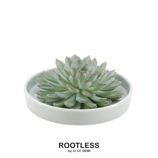 Alle gegevens bekijkenROOTLESS Succulent Echeveria Lilacina in schaal 'wit' - ↕5cm - Ø20cm