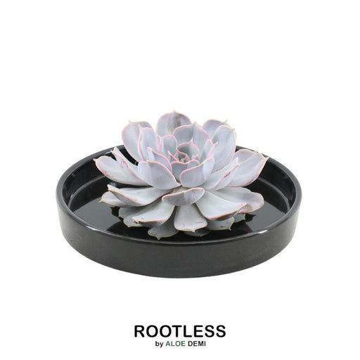 Alle gegevens bekijkenROOTLESS Succulent Echeveria Lilacina in schaal 'zwart' - ↕5cm - Ø20cm