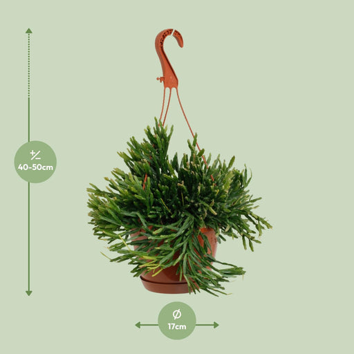 - Deze Rhipsalis wordt geleverd in een potmaat van 17 cm, perfect voor thuisbezorging.- Met een huidige hoogte van ongeveer 35 cm, voegt deze Rhips...
