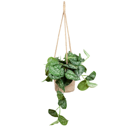 Alle gegevens bekijkenScindapsus Pictus met hangpot Oviedo naturel - ↕25cm - Ø16cm