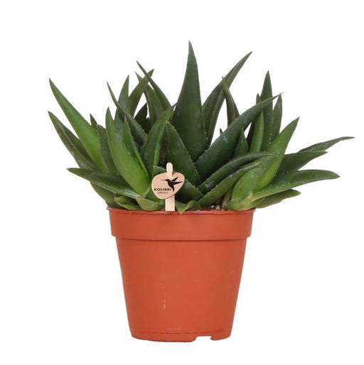 De Haworthia is een geslacht van kleine, langzaam groeiende vetplanten die oorspronkelijk uit Zuid-Afrika komen. Deze plant behoort tot de familie van de Asphodelaceae en staat bekend om zijn unieke bladvormen en patronen. Sommige soorten hebben doorschijnende bladeren, terwijl anderen gedecoreerd zijn met witte strepen of bultjes. Door zijn compacte formaat en eenvoudige verzorging is de Haworthia een populaire keuze voor kamerplantenliefhebbers.
