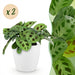 Maranta Fascinator Kerchoveana - Zebraplant - met witte plantenpotten - ↕25cm - Ø12cm - 2x