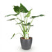 Alocasia Cucullata is een prachtige kamerplant die een exotische sfeer in elke ruimte brengt. Deze plant, ook wel bekend als de 'Chinese Olifantsoor', heeft opvallende bladeren die een rijke groene kleur hebben. De stengels van de Alocasia Cucullata zijn vaak diep paars of zelfs zwart, wat een prachtig contrast vormt met de heldere bladeren. Dit zorgt voor een dynamische uitstraling die zowel modern als klassiek kan zijn, afhankelijk van de inrichting van uw interieur.