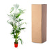 De Kentia palm, ook wel bekend als Howea Forsteriana, is een prachtige groenblijvende palm die een vleugje weelderigheid en elegantie toevoegt aan elke binnen- of buitenomgeving. Met zijn slanke stam, elegante, boogvormige, verenachtige bladeren en indrukwekkende hoogte creëert deze palm direct een gevoel van tropische pracht en sereniteit. De Kentia palm gedijt goed in zowel volle zon als gedeeltelijke schaduw en biedt een weelderige, weelderige uitstraling in diverse buitenomgevingen. Met zijn vermogen om een gevoel van tropische grandeur toe te voegen, is deze palm de ideale keuze voor liefhebbers van weelderige en weelderige landschappen die op zoek zijn naar een opvallende en onderhoudsvriendelijke toevoeging.