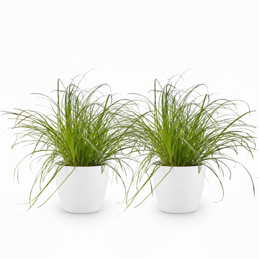 Cyperus alternifolius Zumula - Kattengras - met witte plantenpotten - ↕20cm - Ø12cm - 4x