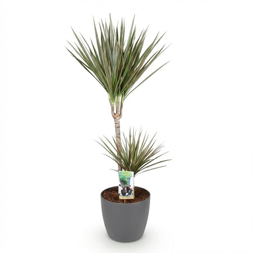 Dracaena Marginata Bicolor - Drakenbloedboom - met grijze plantenpot - ↕90-100cm - Ø21cm
