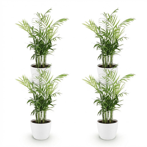Chamaedorea elegans - Goudpalm - met witte plantenpotten - ↕15cm - Ø12cm - 4x
