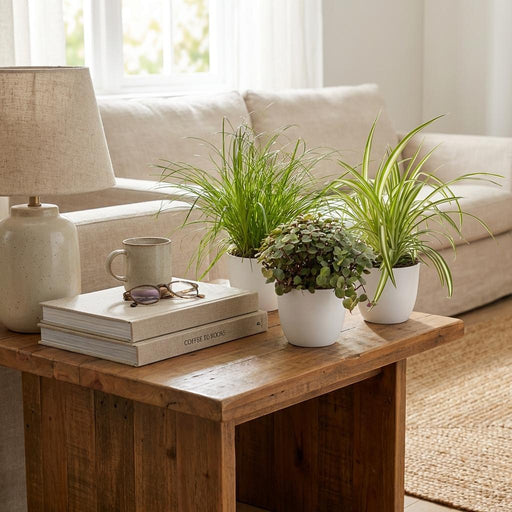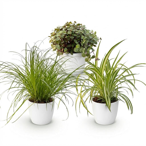 Plantenbox - Cyperus - Callisia - Chlorophytum - met witte plantenpotten - ↕20cm - Ø12cm - 3x