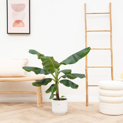 Alle gegevens bekijkenBananenplant (Musa) inclusief elho Vibes Fold Round wit - ↕120cm - Ø22cm