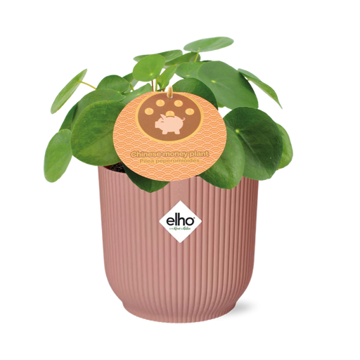Pilea Peperomioides 12cm in ELHO Vibes Fold 14cm roze