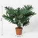 Deze kunstplant Philodendron Selloum van 70 cm is een degelijke middenmaat die door zijn brede, diep ingesneden bladeren direct een volle indruk maakt. De kunstplant is ideaal voor op een bijzetttafel of een donkere ruimte waar een echte kunstplant vaak te weinig licht krijgt. Ook voor in de woonkamer is dit een prachtige kunstplant. Je hoeft nooit bladeren te sproeien of dode punten weg te knippen, want deze variant behoudt zonder enige moeite zijn frisse, groene uitstraling.