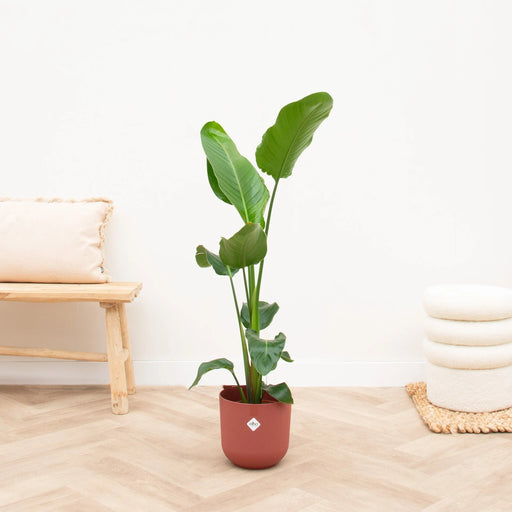 Ontdek een exotische combideal met de statige Strelitzia Nicolai en de stijlvolle elho Vibes Fold pot. Deze majestueuze plant, ook wel bekend als d...
