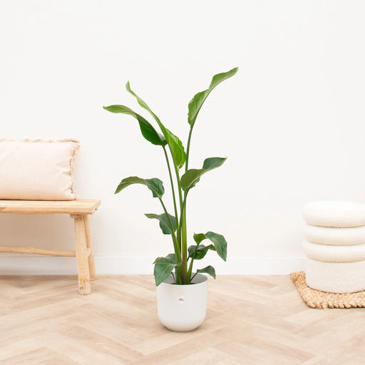 Alle gegevens bekijkenStrelitzia Nicolai inclusief elho Jazz Round wit - ↕130cm - Ø23cm