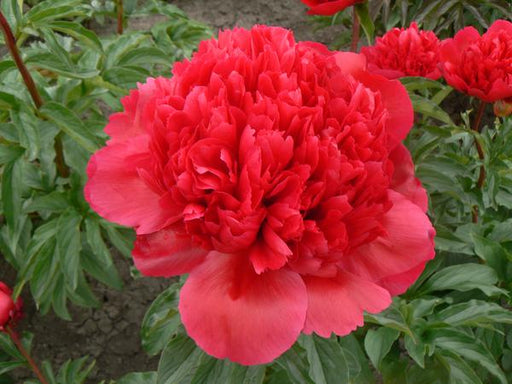 **Paeonia 'Karl Rosenfield'** is a stunning peony with vibrant red flowers that create a striking impact in any garden. The blooms can grow up to 1...