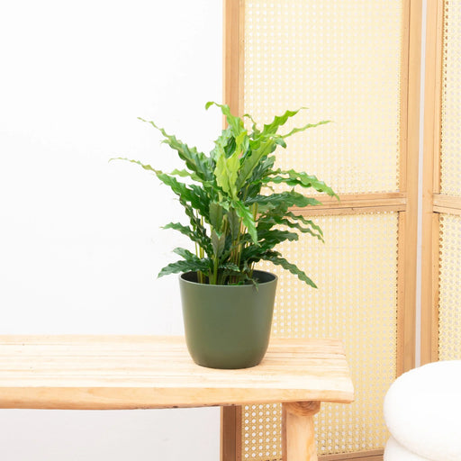 Stap in een wereld van serene schoonheid met de Calathea Bluegrass plant! Met een hoogte van ongeveer 40 cm is deze kamerplant niet alleen een verr...