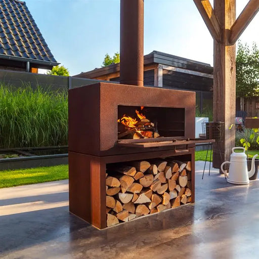 Alle gegevens bekijkenTuinhaard Cortenstaal met Pizzaoven 55 x 49 x 120 cm Buitenhaard | Buitenkachel