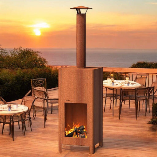 Deze cortenstaal buitenhaard wordt gekenmerkt door zijn strakke vormgeving. Deze haard is een absolute bestseller en draagt bij aan een gezellige s...