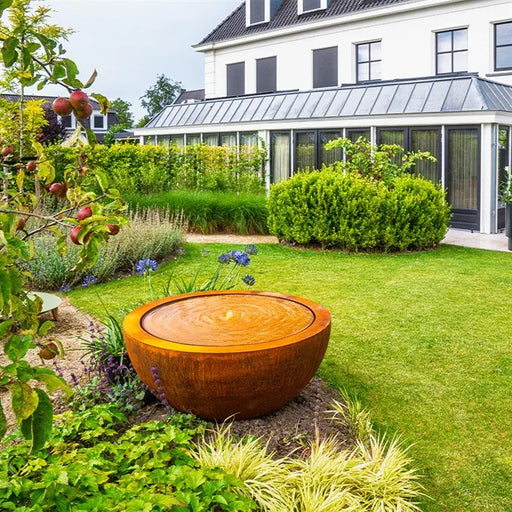 Runde Wassertische aus Cortenstahl erfreuen sich aufgrund ihrer organischen, fließenden Form besonderer Beliebtheit. Durch das abgerundete Design fügt sich der Wassertisch harmonisch in Ihren Garten ein und wird zu einem optisch ansprechenden Blickfang. Die weichen, geschwungenen Linien des Tisches bilden einen schönen Kontrast zur rauen, rostigen Optik des Cortenstahls. Dies macht den runden Wassertisch zur idealen Wahl für moderne wie auch klassische Gärten, in denen Sie ein dezentes und dennoch elegantes Wasserspiel hinzufügen möchten.
