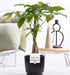 De Pachira Aquatica, ook wel bekend als geldboom, heeft frisgroene handvormige bladeren en een sierlijk gevlochten stam.