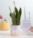 Deze Sansevieria wordt geleverd als een stijlvol groen cadeau, compleet met een kaart waarop "Let's Grow With Us" staat gedrukt.