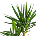 Uiterlijk van de plant: De Yucca Elephantipes heeft stevige, houten stelen waaruit lange, zwaardvormige bladeren groeien. Deze bladeren zijn donkergroen en puntig, wat de plant een krachtige uitstraling geeft. De Yucca heeft een robuust en rechtopstaand uiterlijk dat goed past in moderne interieurstijlen.